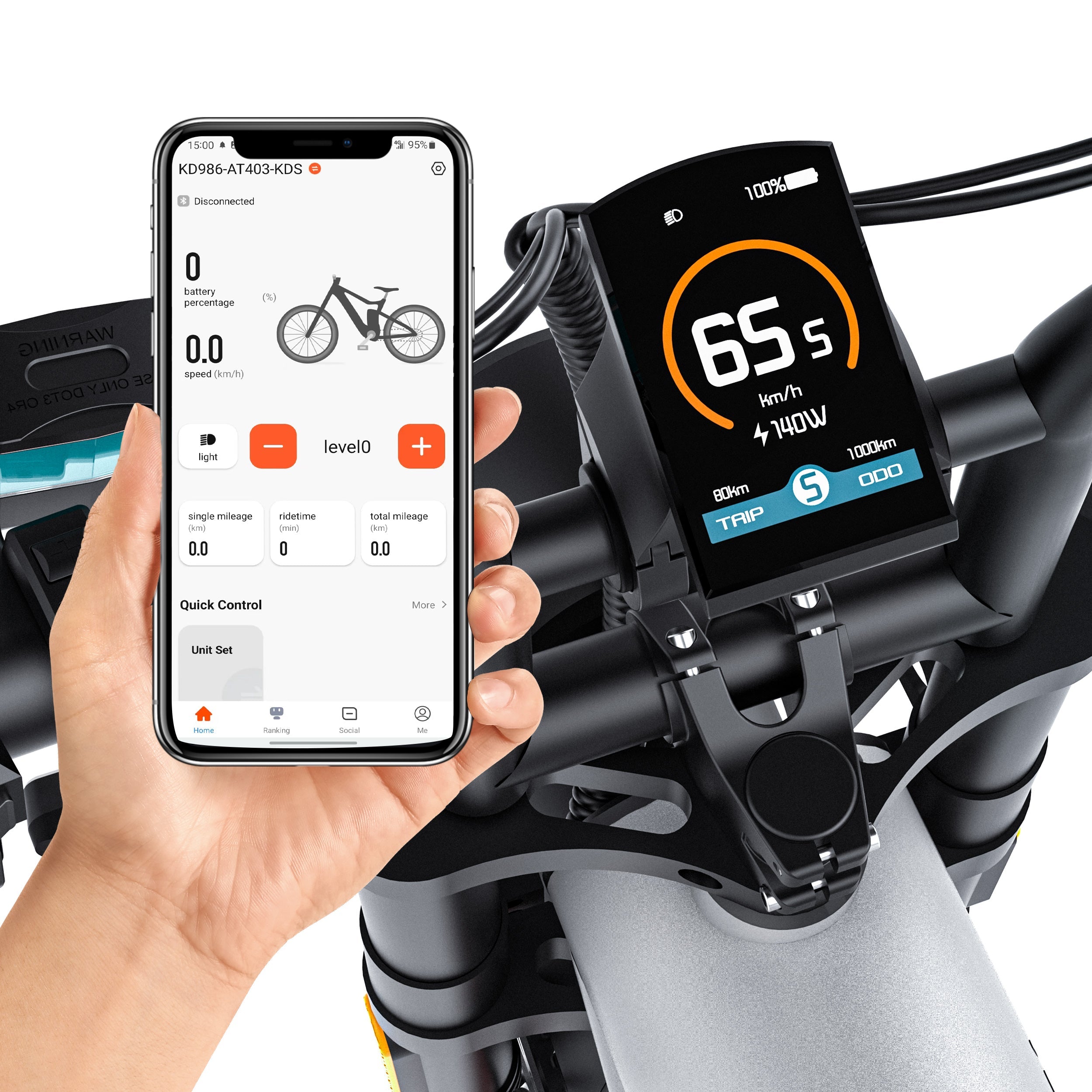 Equipped with automotive-grade dual shock absorbers, the COSWHEEL CT20S ensures superior comfort and control on any terrain. The aluminum alloy front fork offers 80mm travel, while the rear suspension with adjustable damping delivers 180mm travel, effectively absorbing shocks and bumps for a smooth, stable, and responsive ride.