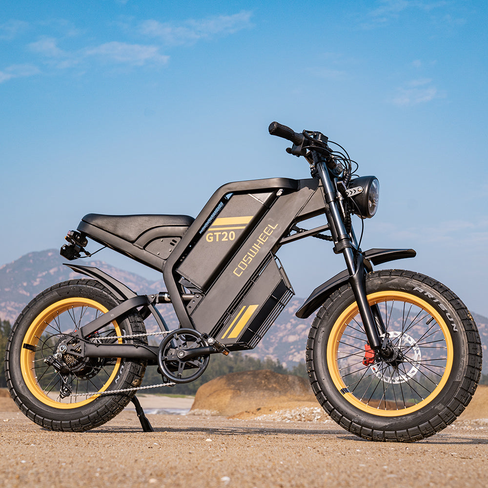 The COSWHEEL GT20 PRO is equipped with a dual-battery system consisting of 48V 25Ah + 15Ah lithium batteries (1920Wh, 18650 cells), delivering exceptional power and extended range. This setup allows riders to achieve up to 80+ miles (128 km) in throttle-only mode and 145 miles (233 km) with pedal assist, making it ideal for long-distance commuting and off-road adventures. Both batteries are removable and feature key switches and heat-insulated protective coatings to ensure safe and reliable performance, while charging via the included 48V 3A charger takes just 3.5–8 hours depending on battery level.