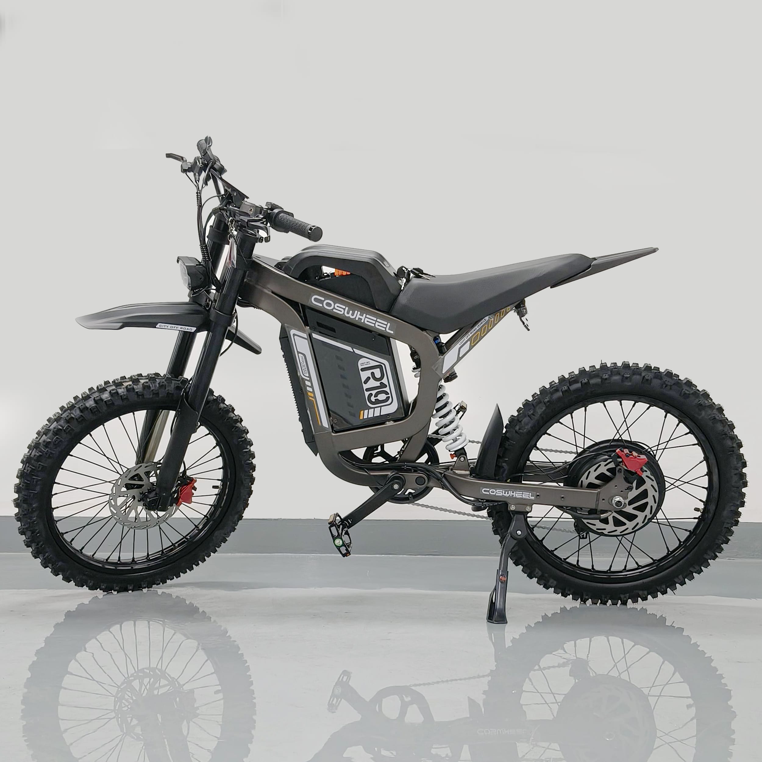 The COSWHEEL R19 is the most cost-effective 72V electric dirt bike on the market, packing a 6000W peak (3000W rated) rear hub motor with 120 N·m torque—enough to make steep hills feel like gentle slopes. Its light throttle gives you precise control, while a top speed of 50 mph (80 km/h) lets you feel the rush of the wind like never before.