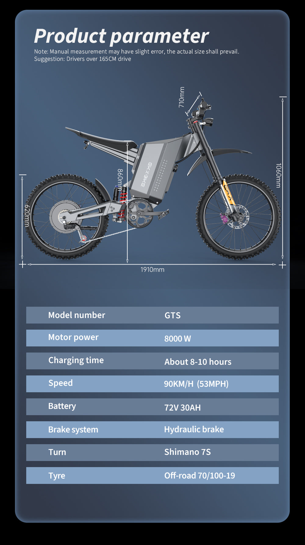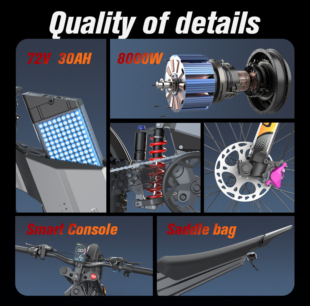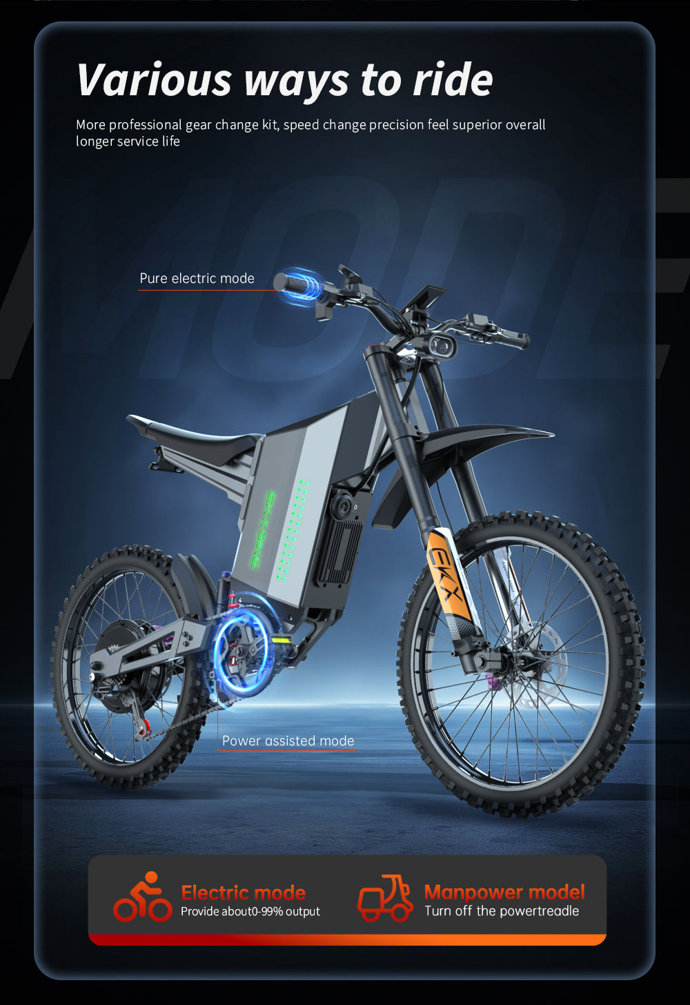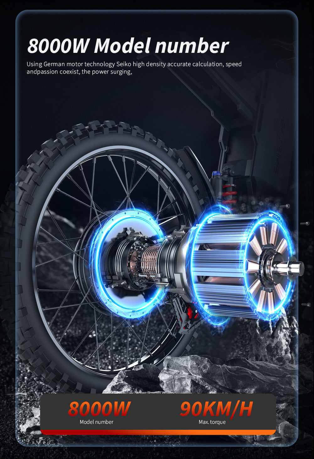 8000W Peak Electric Dirt Bike for Adults with 72V 30AH Battery